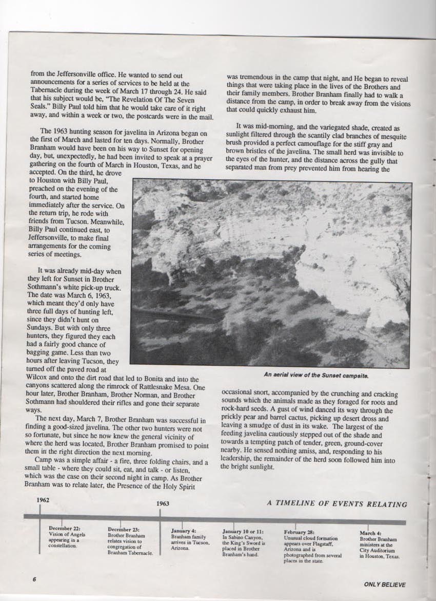 Rebekah Branham Smith, William Branham's daughter, also wrote on the Cloud and specifically details the timing of the events surrounding the appearance of the Cloud in the Only Believe Magazine, "Road to Sunset".